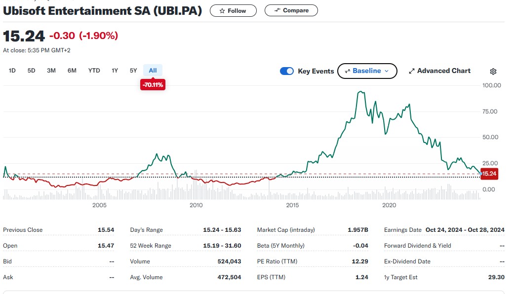 Ubisoftin osake kävi tammikuun lopulla tasoilla, joita ei ole nähty sitten 2011:n, eli käytännössä 15 vuoden pohjissa. Taustalla on iso remontti: kuusi peliä poikki, muita projekteja siirretty ja studioita suljettu. Markkina tulkitsi tämän enemmän hätäjarrutukseksi kuin “uusi vaihe” -tarinaksi, ja kurssi otti rumasti osumaa.